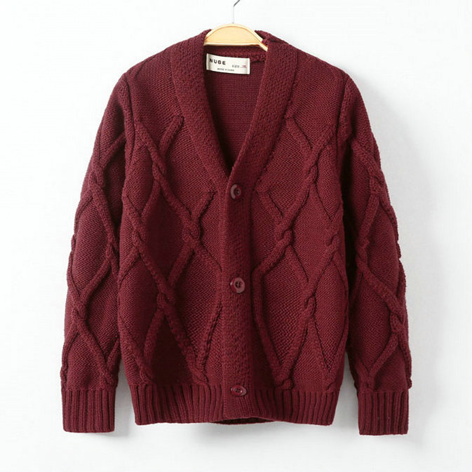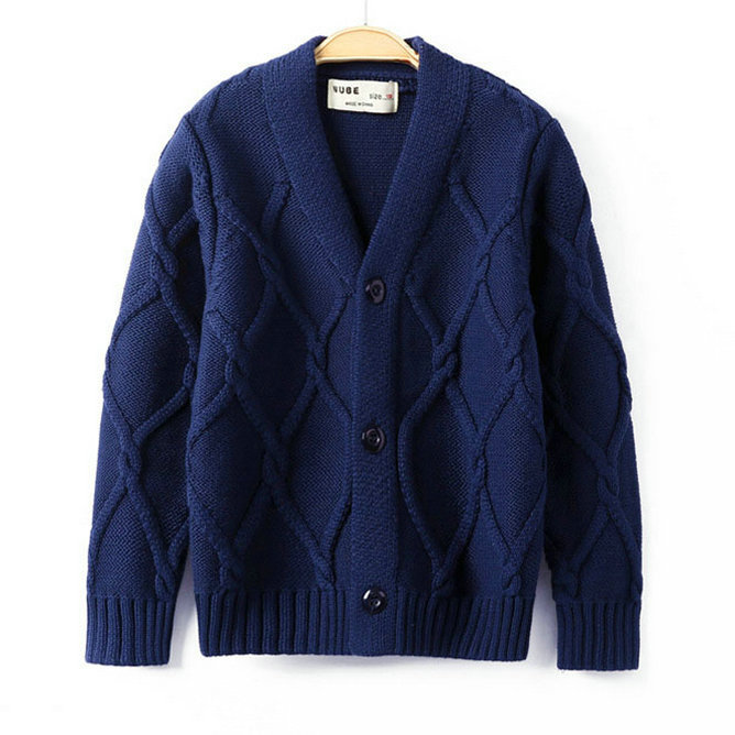 Boys Sweater Solid Warm Jacquard V-neck Cardigan DL31003