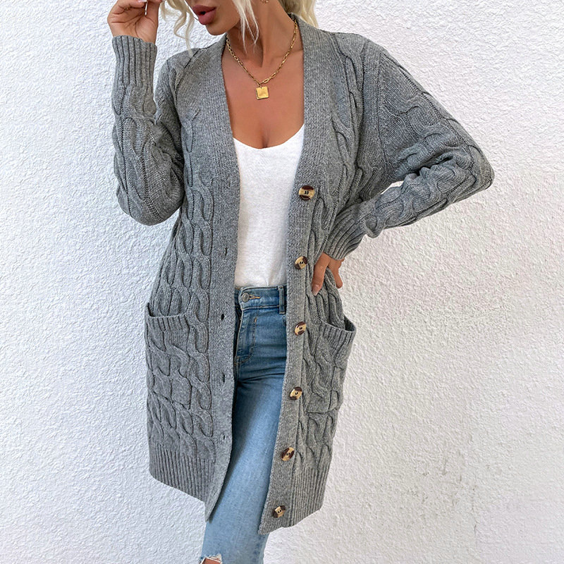 Fashion Knit Sweater Women’s Long Cardigan Button DL21010