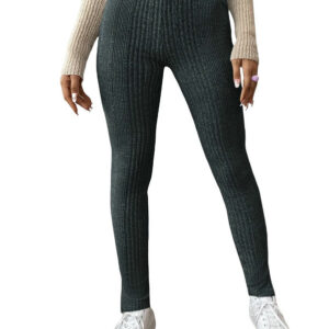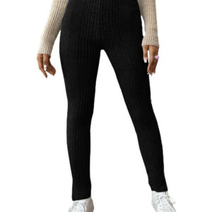 Women’s Elastic Waist Split Hem Leggings Solid Rib Knit Work Pants DL25002
